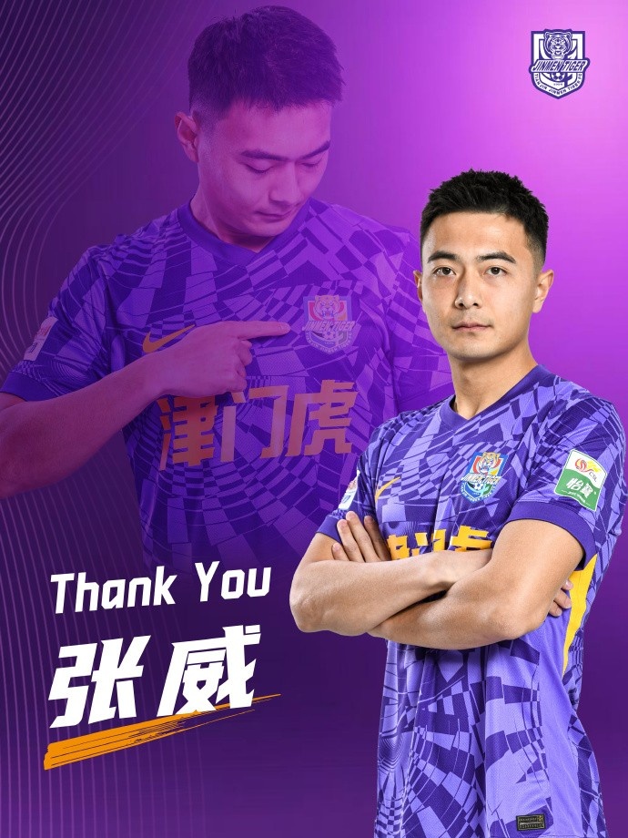 经友好协商,津门虎俱乐部与球员张威提前终止租借协议,我们祝福张威在未来的职业生涯里一切顺利!